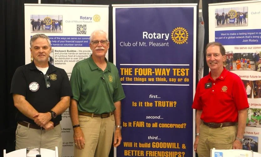 President Ken Tallmadge, Past President Lewis Lee, and Past District Governor Lou Mello participate in the 15th annual Mount Pleasant Chamber of Commerce Business and Community Expo.